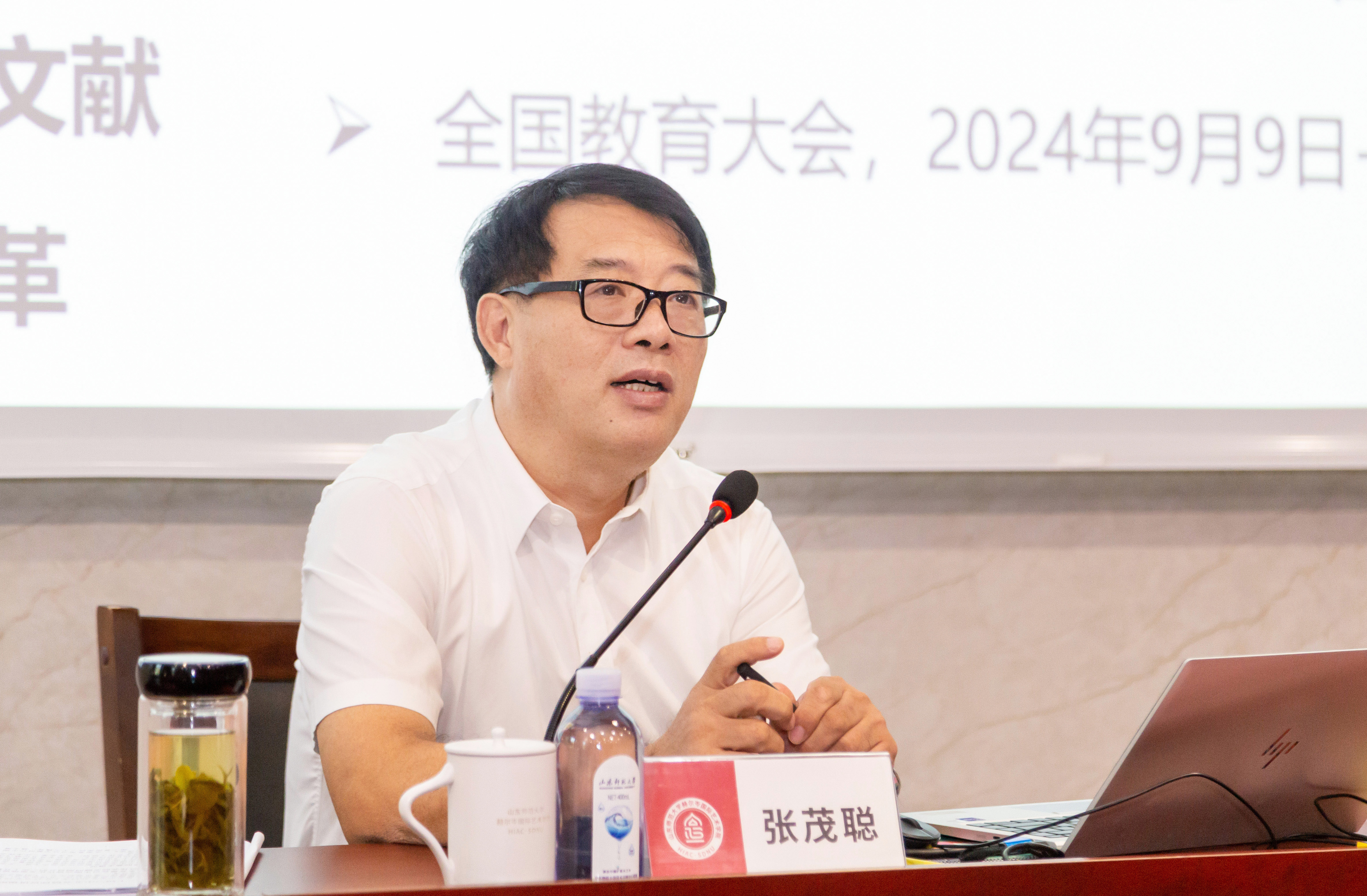张茂聪以“深化教育综合改革,加快建设教育强国”为主题,梳理了改革开放以来历次全国教育会议的主要精神,就会议成果中党的教育理论创新进行了概括与凝练,并号召大家结合实际认真学习领会,并不断深化对会议战略意义的认识与理解。他围绕教育强国建设的“六大特质”“五大关系”“五大任务”,深刻剖析其底层逻辑、历史规律及独特的时代背景,引导大家全面把握教育强国建设的深远历史意义。他从教育的政治属性、人民属性、战略属性出发,探讨深化教育综合改革的主要任务及使命责任,鼓励同学们要筑牢知识基础和理论根基,做好未来规划,在中外合作办学资源优势中把握时代机遇,提升自身综合素养。