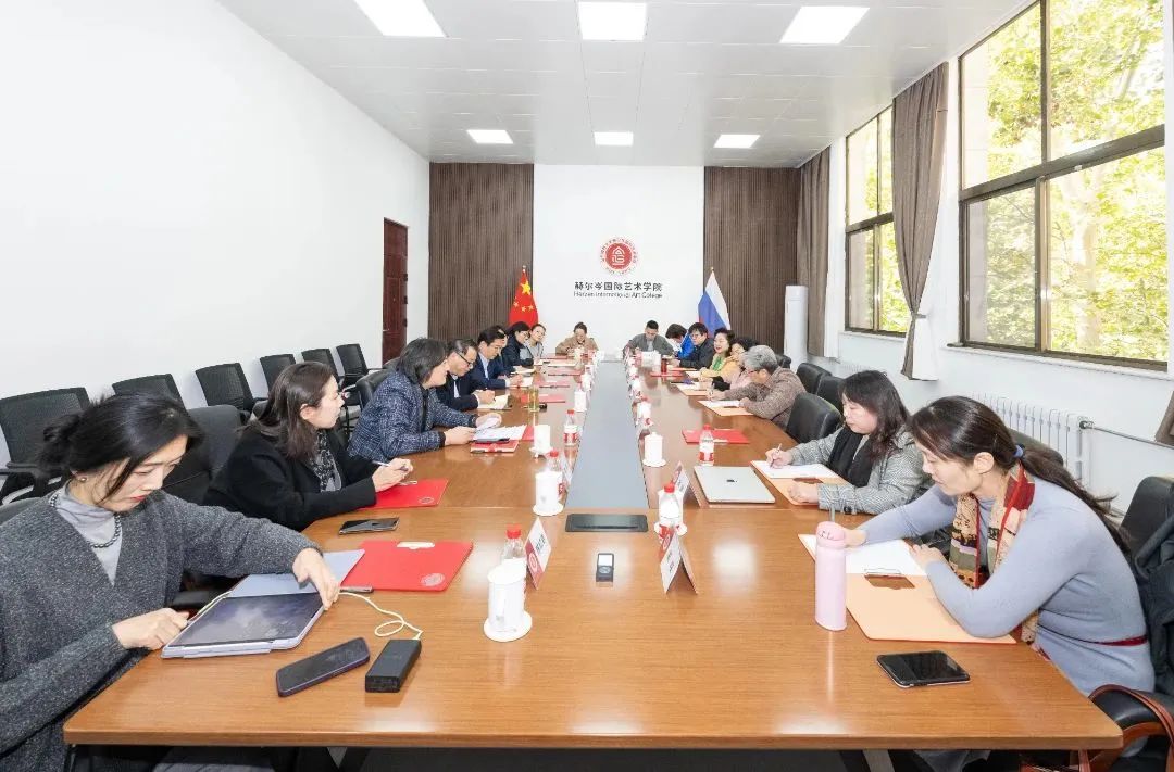 随后,刘东峰具体汇报了中外合作办学机构对于硕士研究生的培养要求,他指出赫尔岑国际艺术学院的性质和定位决定了人才培养的定位,因此,既要根据教育部艺术硕士教指委的要求,又要结合俄师大硕士培养方案,将我们自己的方案落实到研究生的教学与科研中。其次,他分别介绍了艺术硕士美术方向和音乐方向的具体的培养计划和培养目标。同时表示,学院将会综合考量、统筹协调,进一步细化研究生课程形式,加强研究生课程建设、提升研究生教育质量。