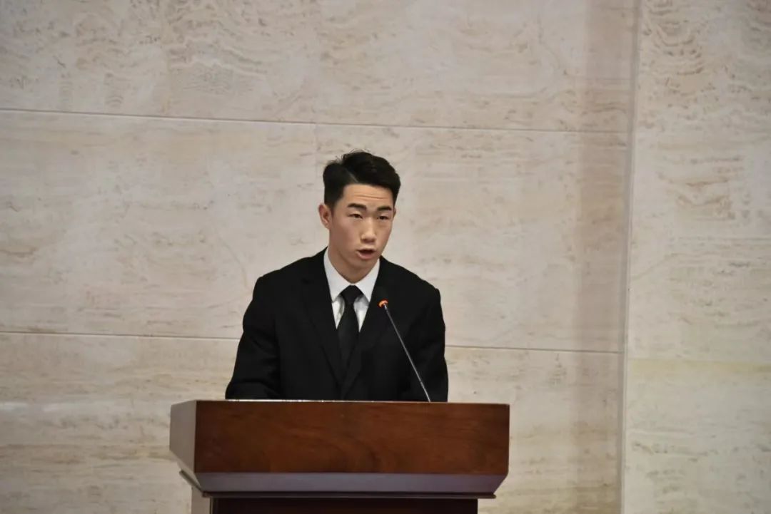 校学生会执行主席栾亦宸代表山东师范大学学生会对学院学代会的召开表示祝贺,号召新一届学生会深入学习贯彻党的二十大精神、团的十九大精神和学校第九次党代会精神,坚定不移听党话、跟党走,以更加昂扬的姿态、更加扎实的工作,奋进新征程、建功新时代。