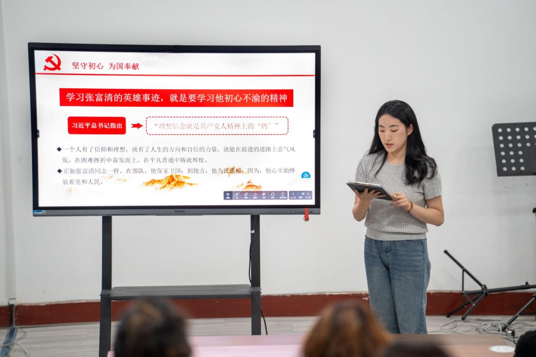 此次团课的主人翁是一位被授予“人民功臣”奖章的优秀党员——张富清同志。在新中国成立前入伍,出生入死、保家卫国,以赫赫战功为中国解放事业立下汗马功劳;复员转业后,主动到最艰苦的地方工作生活,克己奉公、为民造福。一个人有了信仰和理想,就有了人生的方向和自信的力量,就能在前进的道路上意气风发,在困难挫折中奋发而上,在平凡普通中铸就辉煌。