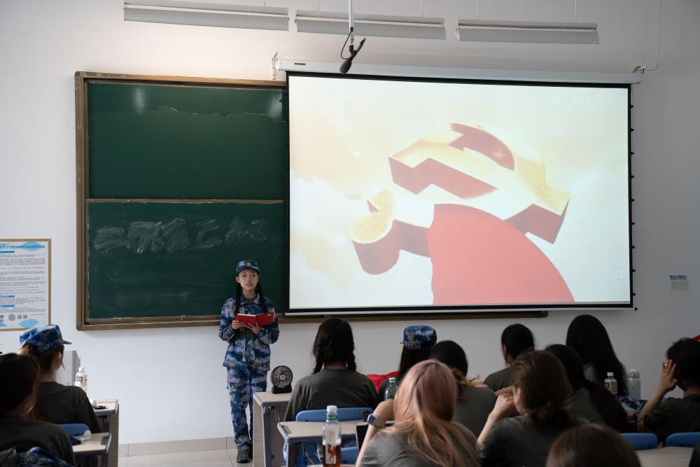 随后,薛雯涵为大家播放了我国百年发展的影像资料,全面展示了实现第一个百年奋斗目标所取得的丰硕成果。她强调,这些成就是全国各族人民共同奋斗的结果,也是我们继续前进的宝贵经验和强大动力。她号召同学们,以实现第二个百年奋斗目标为指引,积极贯彻新发展理念,将“创新、协调、绿色、开放、共享”的理念融入艺术创作和实践中,践行“五位一体”总体布局,发挥青年先锋作用,助力国家文化建设。