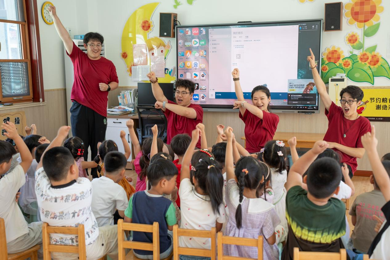 在济南举办的“科教兴国,人才强国”青少年AI学习营中,同学们将前沿AI技术与艺术创意深度融合,设计趣味编程AI绘画等特色课程,通过寓教于乐的教学形式激发青少年对科技与艺术的兴趣;“艺行田野:以艺术赋能乡村振兴”实践队走进青岛崂山多个村落,开设特色美育课程激发乡村儿童的艺术兴趣与创造力,参与乡村环境设计优化文旅人居环境,非遗技艺创新展示与文化展演活动丰富了村民的精神生活;在曲阜市老年大学,“拾光慢递、乐舞所谓”实践队开展暖心服务活动,教授老年人简单易学的舞蹈动作,组织怀旧金曲合唱活动,搭建代际交流平台促进不同年龄群体沟通互动。此外,多支实践队走进五莲、临沂、济南等地的特殊教育机构与康复医院,通过专属定制的艺术课程,借助音乐旋律与节奏律动帮助特殊儿童建立认知连接,温暖童心。