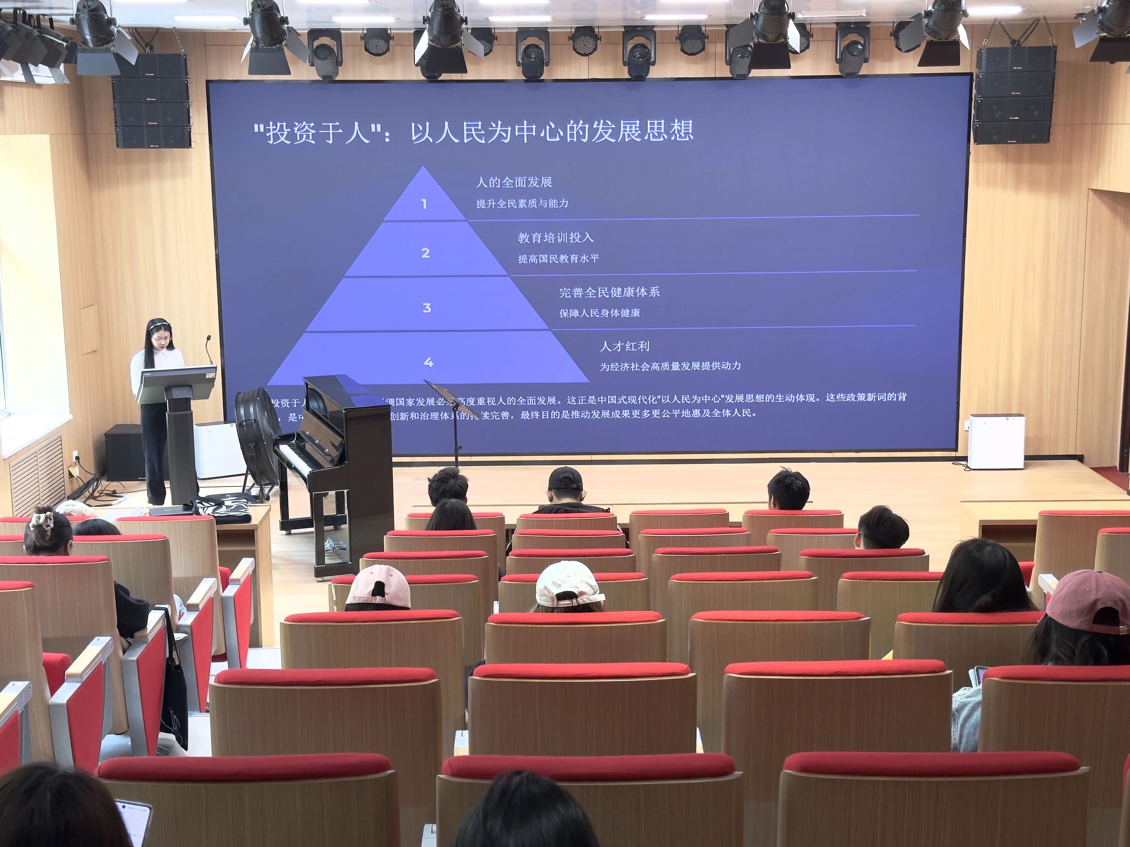 课上,李晓敏详细剖析了科技、经济、政策等领域的新词。“具身智能”“6G” 等科技新词,彰显中国在全球科技前沿的主动进取,推动人工智能与实体经济融合,布局未来通信产业高地;“独角兽企业”“瞪羚企业”“新型离岸贸易” 等经济新词,描绘出中国经济创新发展的新动能,助力经济转型升级;“零基预算改革”“因城施策调减限制性措施”“投资于人” 等政策新词,展现宏观调控和社会治理的创新思维,推动发展成果惠及民众。