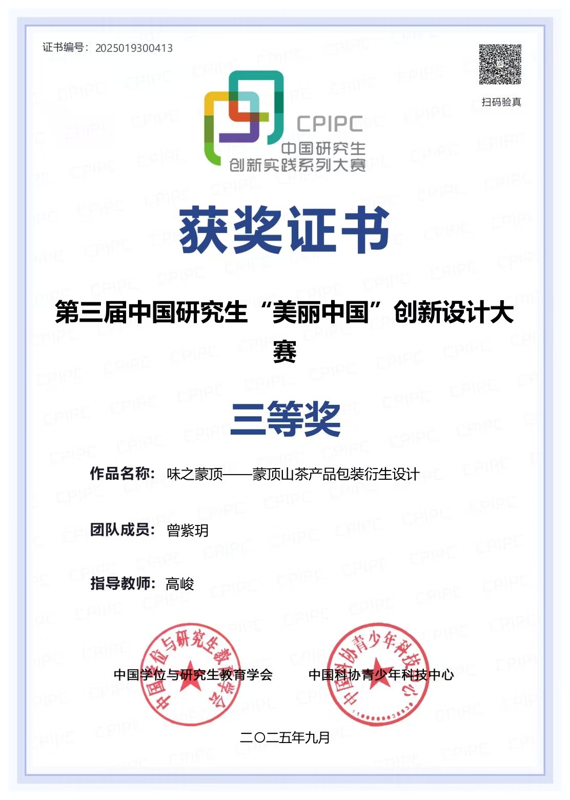 学校将以此次大赛为契机,进一步发挥研究生教育教学优势,鼓励研究生参与更多的创新实践活动,持续提升专业技能。同时,将继续加强理论与实践结合,提升研究生的创新实践能力,以培养更多适应国家发展需求的创新实践人才,为增强文化自信、传播中华美育精神、推动中国设计走向世界贡献更多青春力量。
