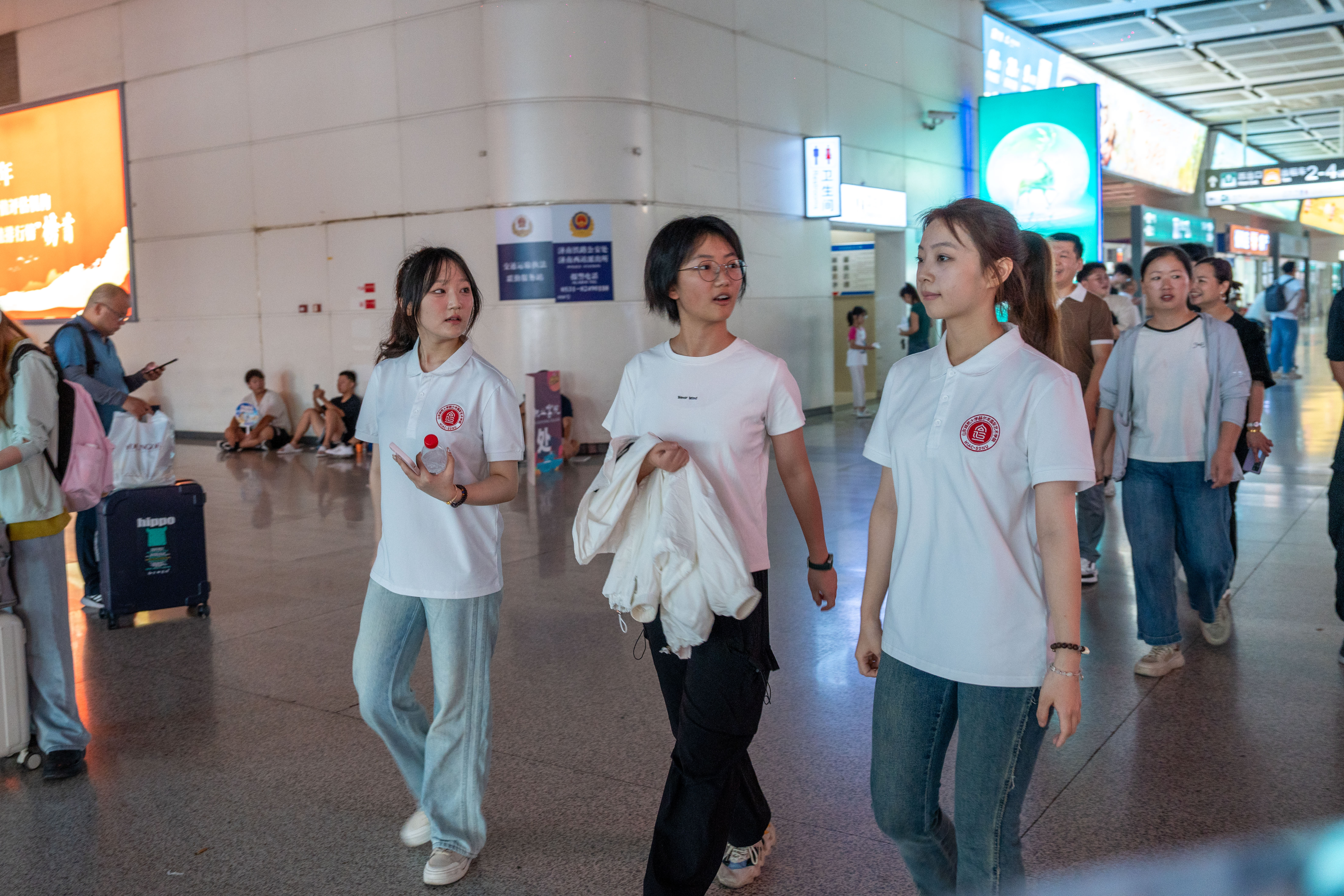 在济南西站,赫尔岑国际艺术学院的志愿者们身着统一的志愿者服装,以饱满的热情和积极的态度投入到这次迎新生活动中。他们不仅为新生和家长们指引方向,解答疑问,还提供了行李搬运、临时休息等贴心服务,让每一位初来乍到的新生都能感受来自“赫艺繁花”团队的温馨与体贴。