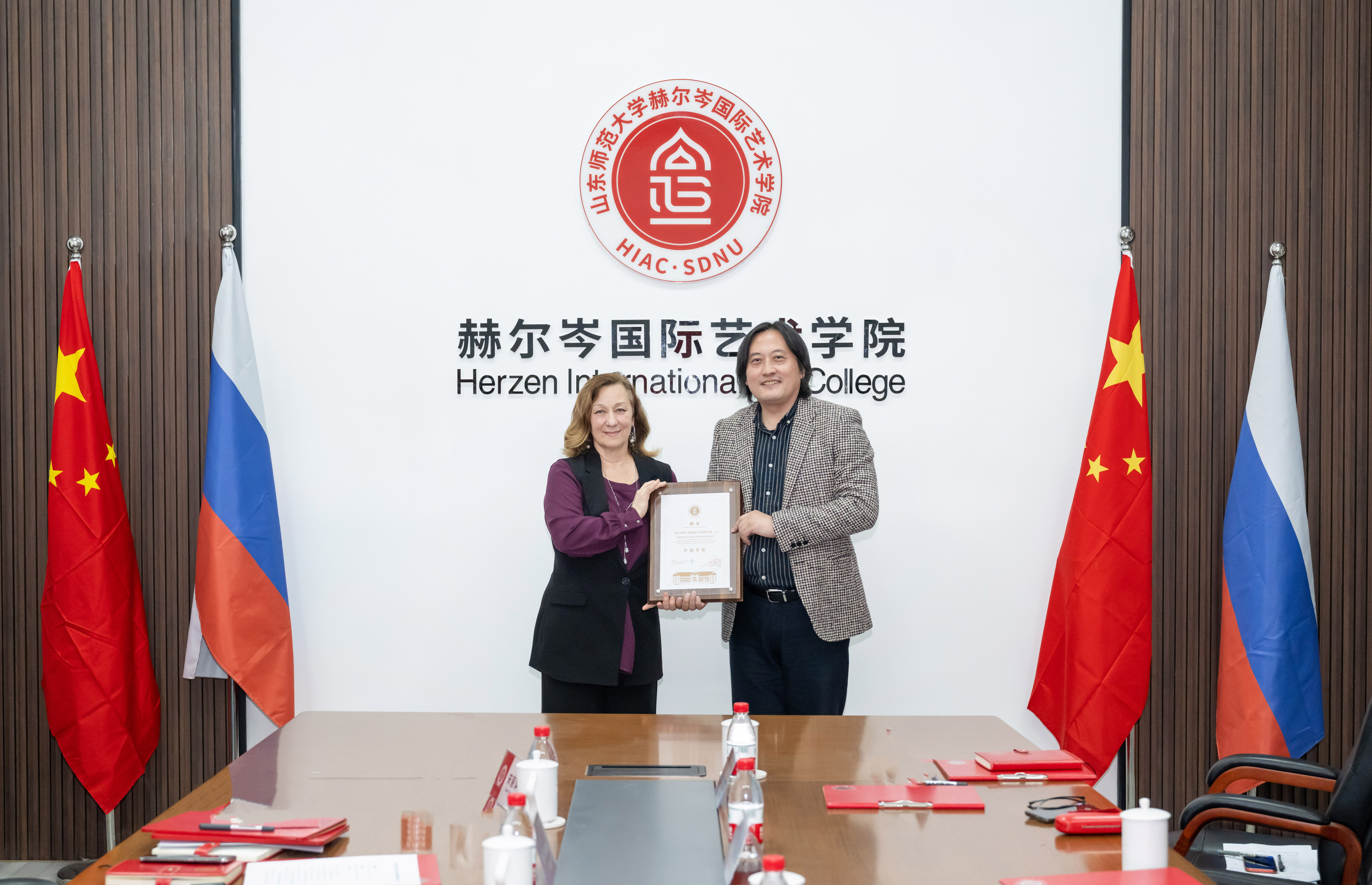 首先,张茂聪对本学期到来的各位外籍教师表示热烈欢迎,他表示,外籍教师们为赫尔岑国际艺术学院的国际教学工作做出了突出贡献,是两校文化艺术友好交流的使者,更是两校精诚合作的生动体现,为学院国际化高质量办学起到了积极的推动作用。希望各位外籍教师继续发挥其学科专业和国际资源的优势,与我院专业教师齐心协作,广开思路,推动人才培养方案等教学工作迈上新台阶,共同培养出具有中国精神、国际视野、人文情怀的中外合作艺术教育人才。随后,赫尔岑国际艺术学院刘东峰院长介绍了学院基本情况,对各位外籍教师在学院的辛勤付出和敬业精神表示感谢,希望外籍教师们能够继续以学生为中心,因材施教,进一步提高学院教学质量,同时也希望外籍教师们积极为学院的发展建言献策,共同建设好两校的国际艺术教育平台。
