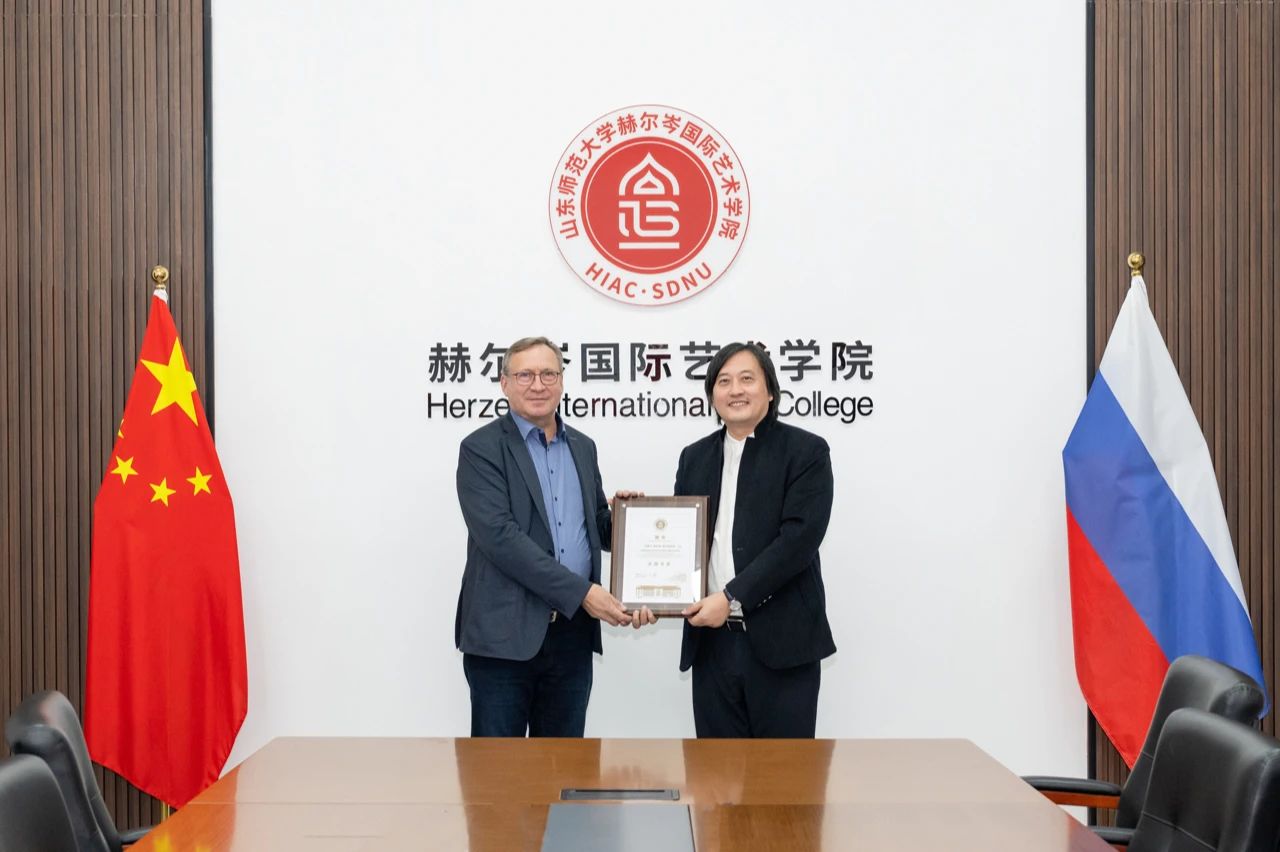 最后,张茂聪向马霍夫赠送学院纪念品;刘东峰为马霍夫院长颁发外国专家聘书。