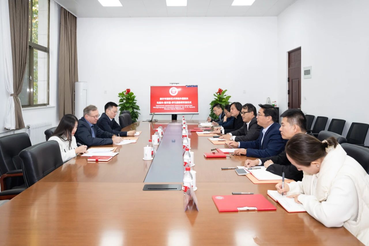 10月20日下午,赫尔岑国际艺术学院俄方院长马霍夫·谢尔盖·伊凡诺维奇欢迎仪式在学院1341会议室隆重举行,校党委常委、副校长张茂聪出席仪式,学院领导班子成员以及部分教师参加了仪式。仪式由学院直属党支部书记李华臣主持。