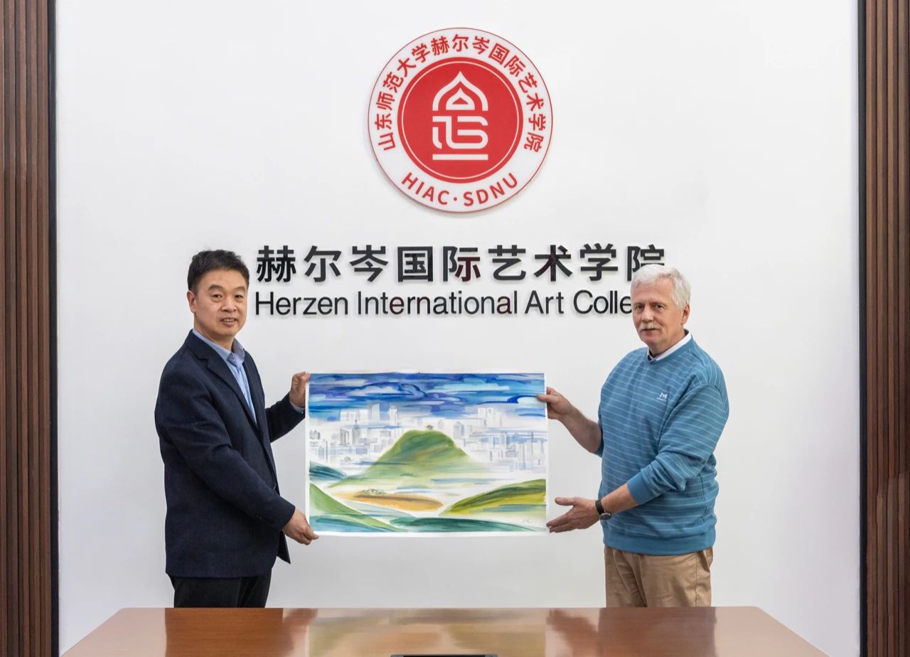 安德烈感谢学院对他在工作、生活上的关心和帮助。他说,来校工作后,深深地为山师丰厚的文化底蕴和学生们的学习热情所折服,回国后将向俄罗斯的同事们传递这种幸福。安德烈感谢学院为他提供了难得的文化体验活动,让他近距离领略了博大精深的中国优秀传统文化和秀美风光……感动之余,他精心绘制了春天的千佛山和师大校园,表达自己的喜爱和留恋之情,表示一定常来中国和山东师大,为学生们传授知识,用艺术搭建起两国人民的友谊桥梁。