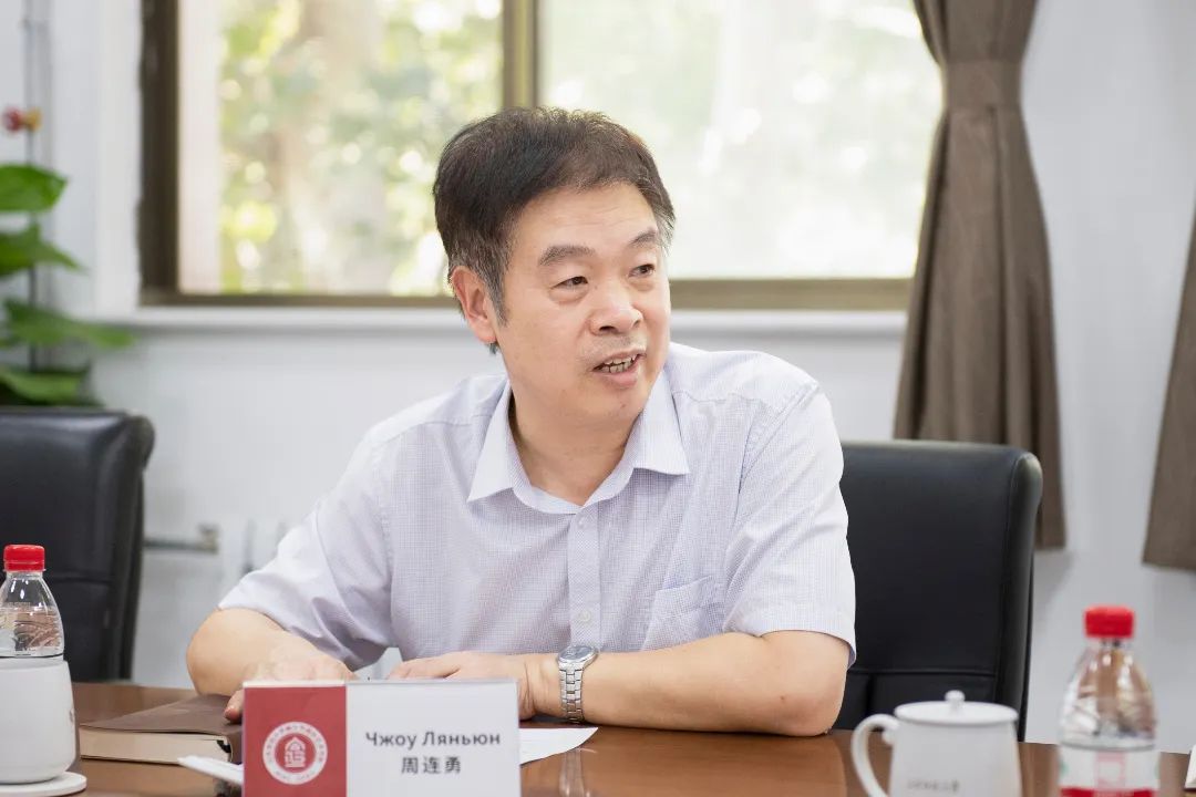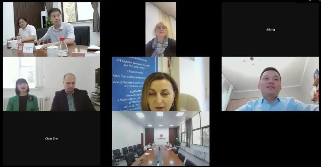 周连勇首先对俄师大团队在学院申办过程中的辛苦付出表示诚挚的感谢,就学院目前的发展建设情况与专业教学情况进行总体介绍,并对俄方领导与教师来华的工作和生活环境进行了展示。他表示,学校和学院领导高度重视俄方教师选派工作,期待与参会的各位领导早日在线下相见。