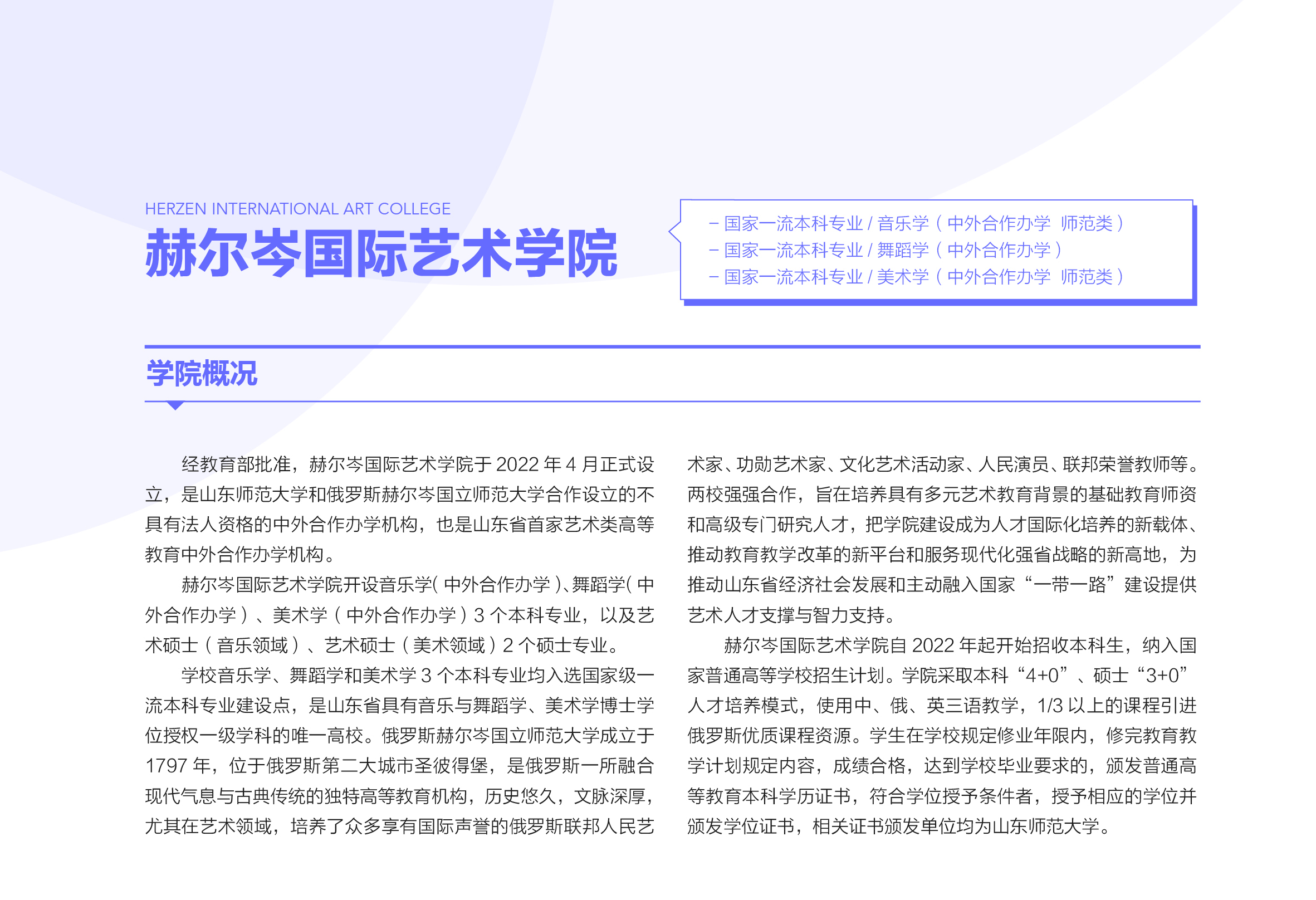 赫尔岑国际艺术学院本科招生专业