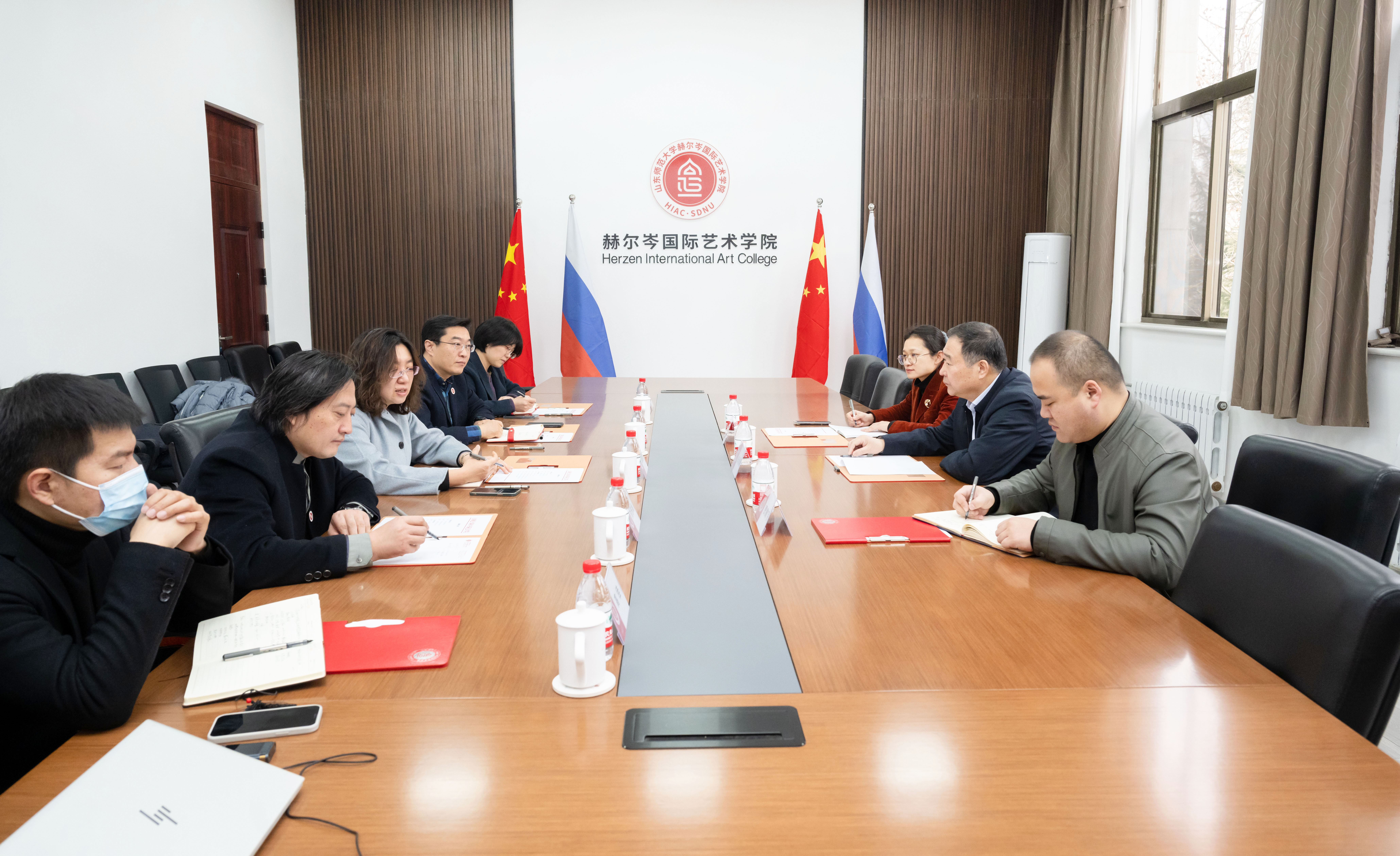 马宇虹对山东师范大学的热情接待表示感谢,对赫尔岑国际艺术学院一年多以来开展的工作和所取得的成绩给予高度赞赏。马宇虹简要介绍了学院发展情况,着重就学院党建工作、意识形态、对外宣传,希望学院间可以加强优势互补,互通有无,共同提升国际化办学质量。