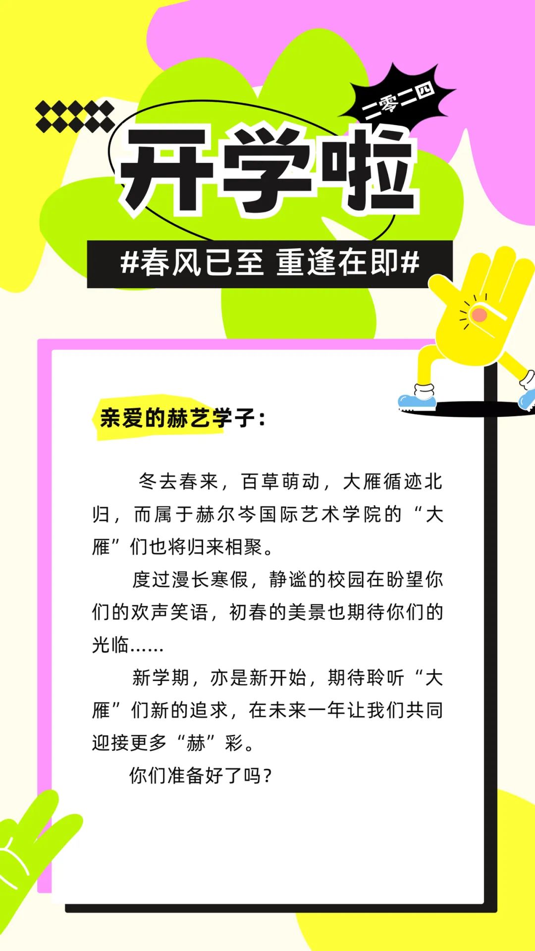 2.调节心态,积极面对学习生活。寒假长时间的放松,可能会导致返校时难以适应新学期学习强度,记得给自己积极的心理暗示,调节焦虑的心态。