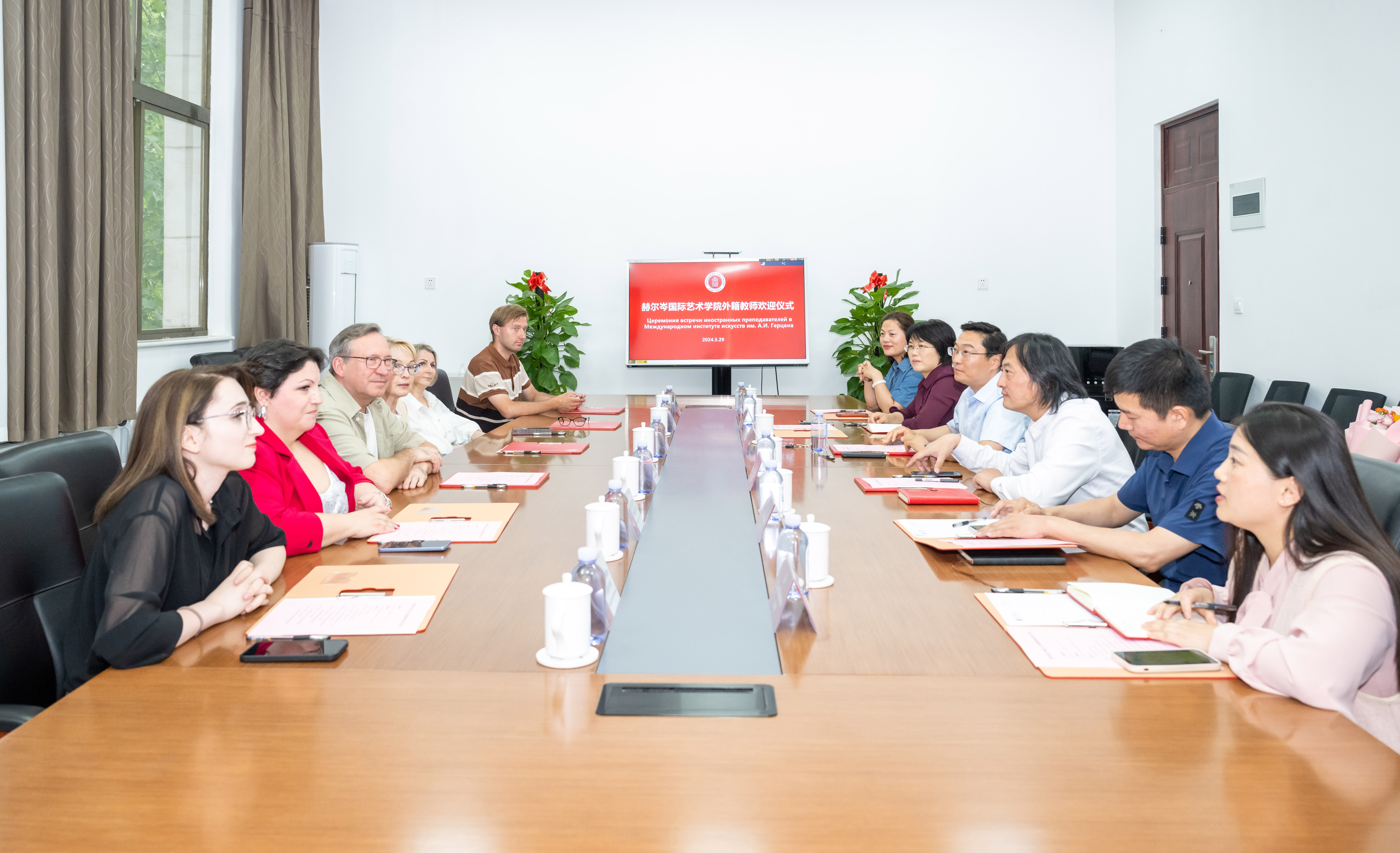 5月29日下午,赫尔岑国际艺术学院新聘外籍教师欢迎仪式在学院1341会议室隆重举行。仪式由学院直属党支部书记李华臣主持,学院领导班子成员参加。