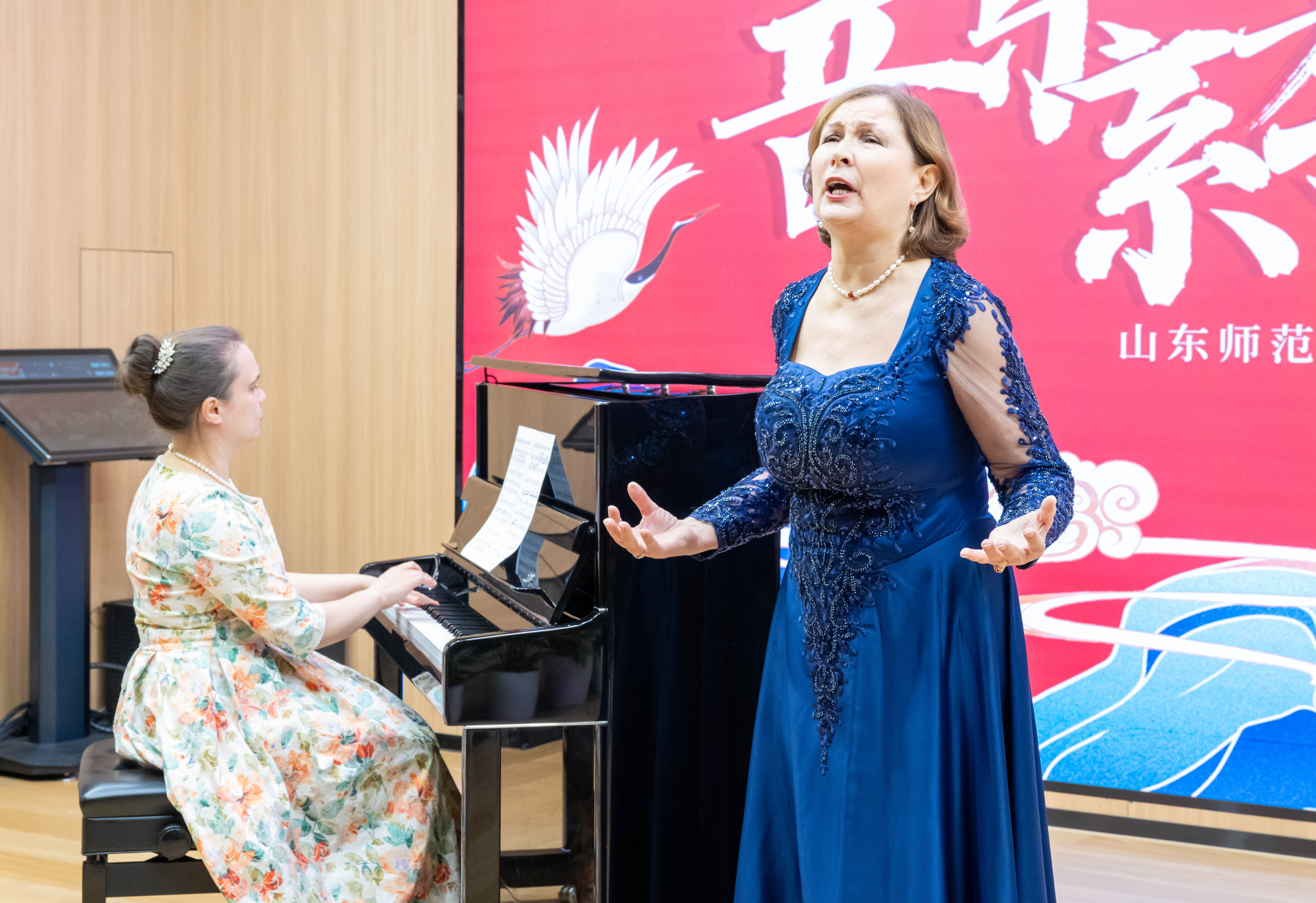 外籍教师伊莲娜·莫罗佐娃以醇厚嗓音带来尼古拉·莫洛佐夫的艺术歌曲《蒂普迪克》,展现俄罗斯民族音乐的深沉与抒情。