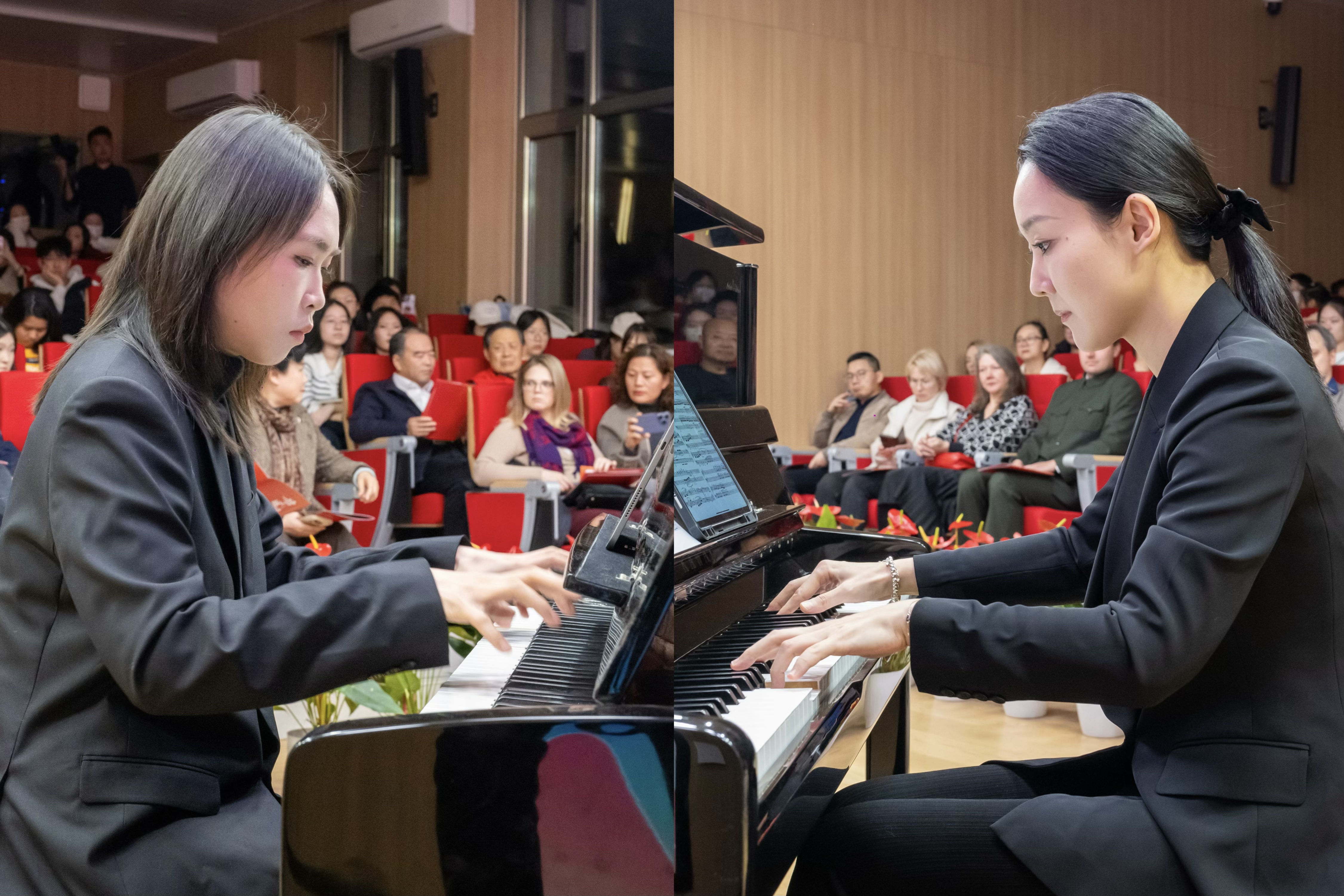 外籍教师亚历山大·特鲁欣挑战李斯特改编的经典作品《钟》,以高超的演奏技巧拓展钢琴表现边界,将音乐会推向高潮。