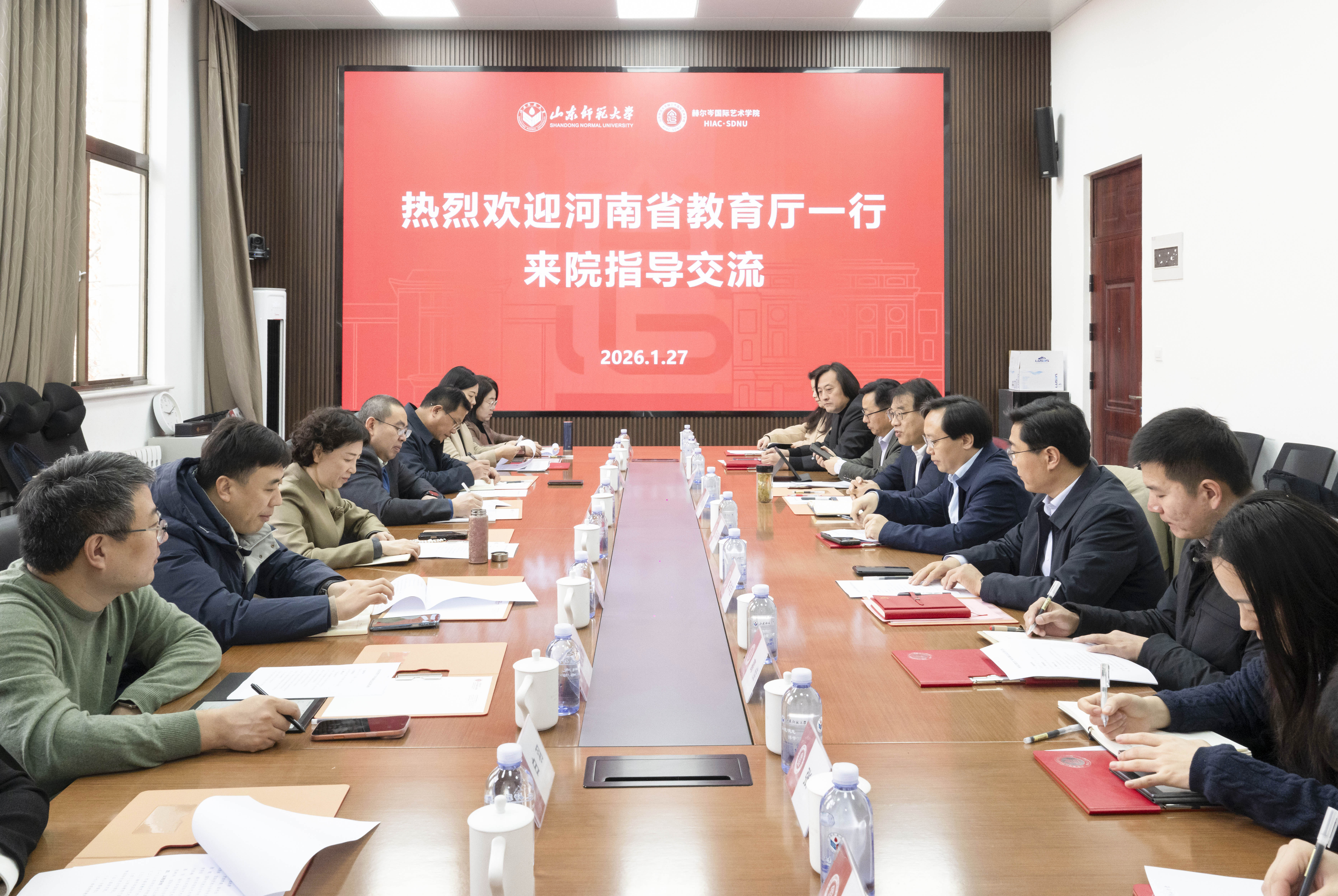 1月27日,河南省教育厅对外合作与交流处处长王华星一行来校调研国际化发展和中外合作办学工作。山东省教育厅国际交流与合作处处长王夫海出席活动并介绍山东省教育国际交流相关工作。副校长张茂聪在千佛山校区会见客人并出席座谈交流会。国际交流与合作处、赫尔岑国际艺术学院主要负责同志参加此次活动。