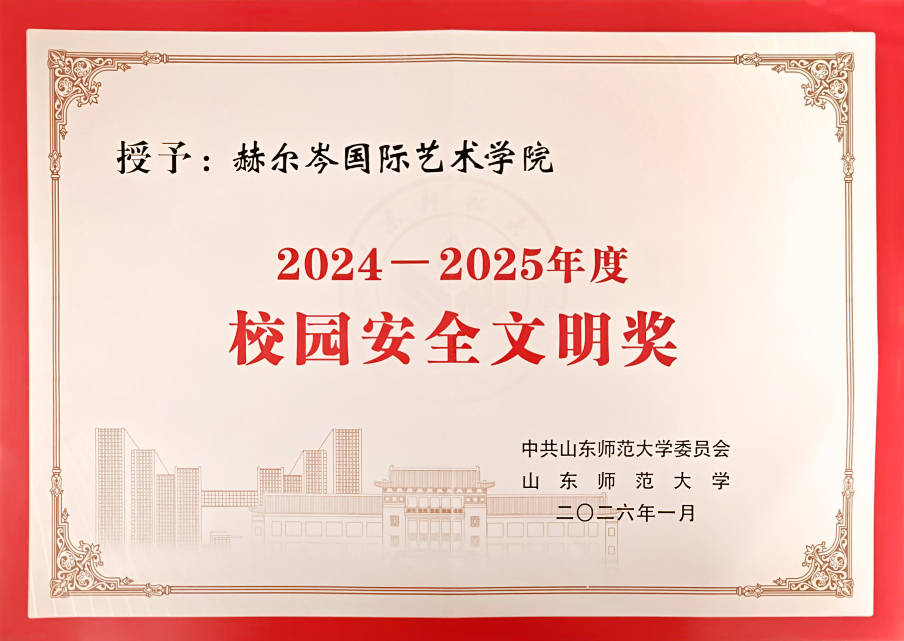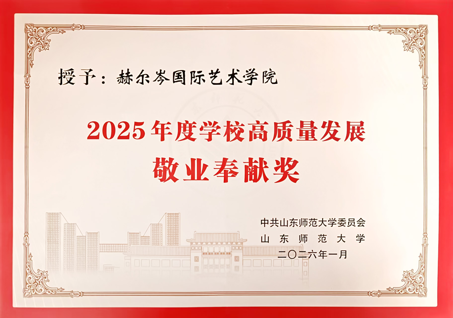 2月1日上午,山东师范大学千佛山校区举行2025年度高质量发展总结表彰大会。赫尔岑国际艺术学院荣获山东师范大学“2025年高质量发展敬业奉献奖”与“2024-2025年度校园安全文明奖”。