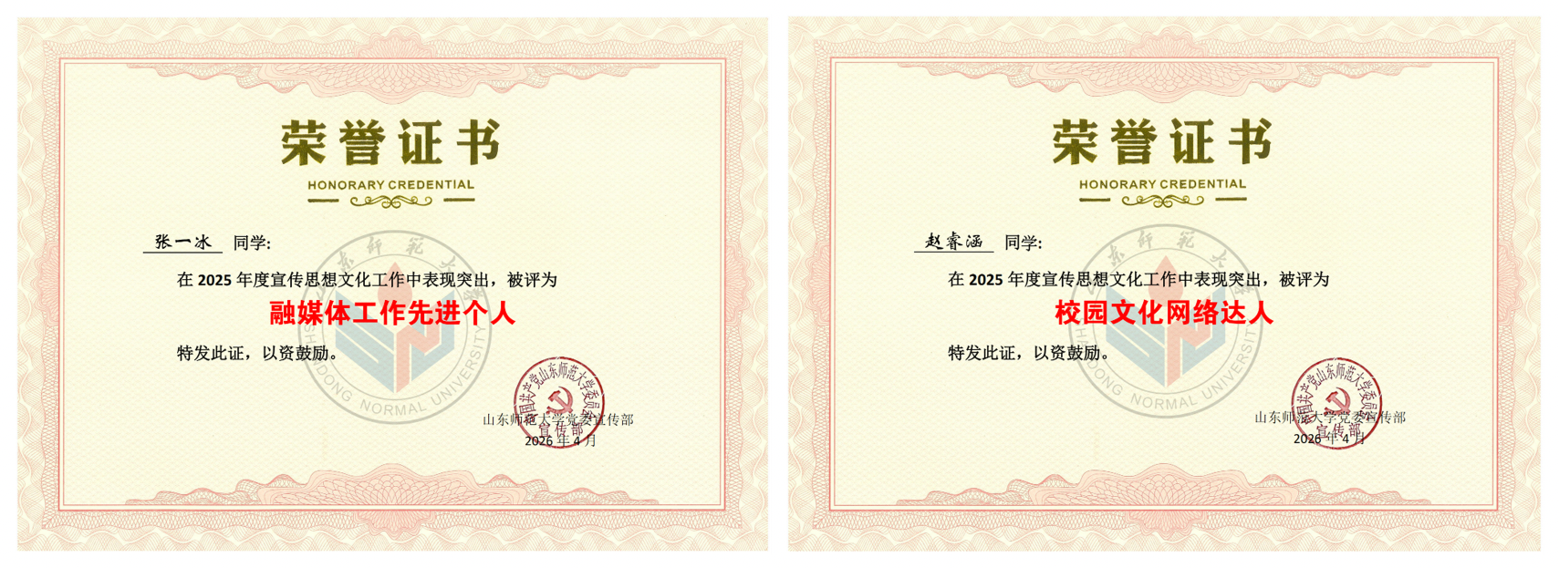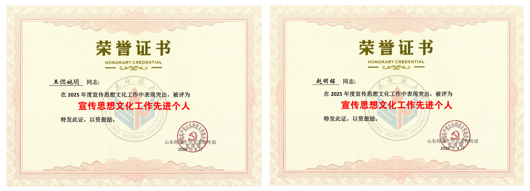 4月23日,学校2026年宣传思想文化工作会议在长清湖校区树蕙堂报告厅隆重举行。学院荣获“2025年度融媒体建设突出贡献奖”;学院官方媒体平台荣获“2025年度最具影响力融媒体平台”;2人获评“宣传思想文化工作先进个人”;3人被评为“融媒体工作先进个人”;1人被评为“校园文化网络达人”;学院推出的融媒体作品荣获2025 年度优秀融媒体作品图文类二等奖与微视频类三等奖。