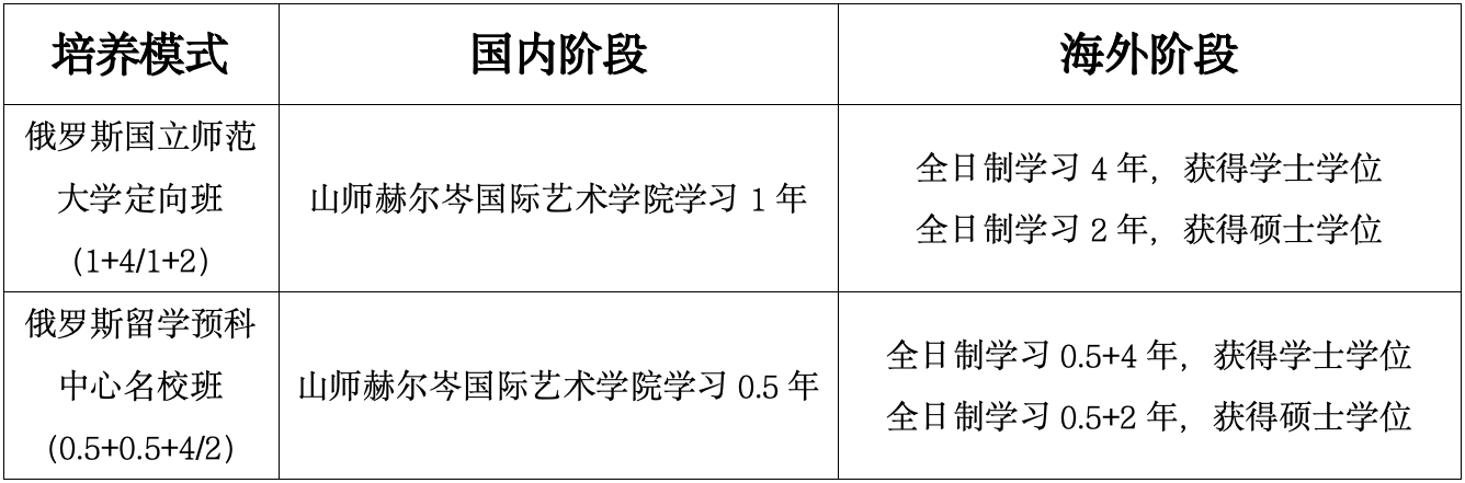 俄罗斯留学预科中心是为继续拓展合作领域,丰富办学模式,培养具有国际化教育背景的复合型人才,山东师范大学赫尔岑国际艺术学院与俄罗斯一流院校联合设立的留俄预科中外合作项目。针对应往届高中毕业生、高二学生、本科应往届毕业生(读硕)俄罗斯出国留学,分别由定向班和名校班两个计划组成。